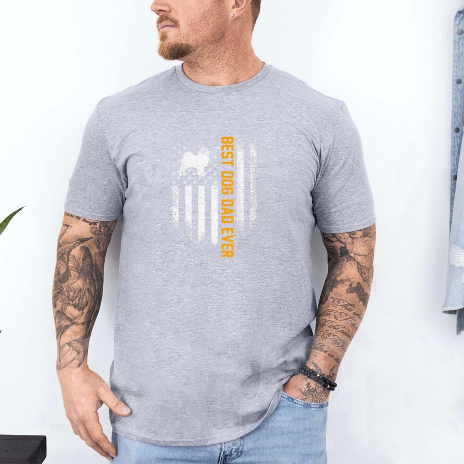 Comfy, casual, and always in style, this Best Pomeranian Dog Dad Ever American Flag T-Shirt T-shirt is perfect for daily wear or easy gifting.
